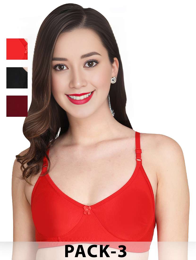 Liigne Women Everyday Padded Bra (Pack Of 3) - Made of Pure Cotton Full Coverage Non Wired Pushup Soft Cup for T-Shirt Saree Dress Sports Garment for Daily Use Everyday