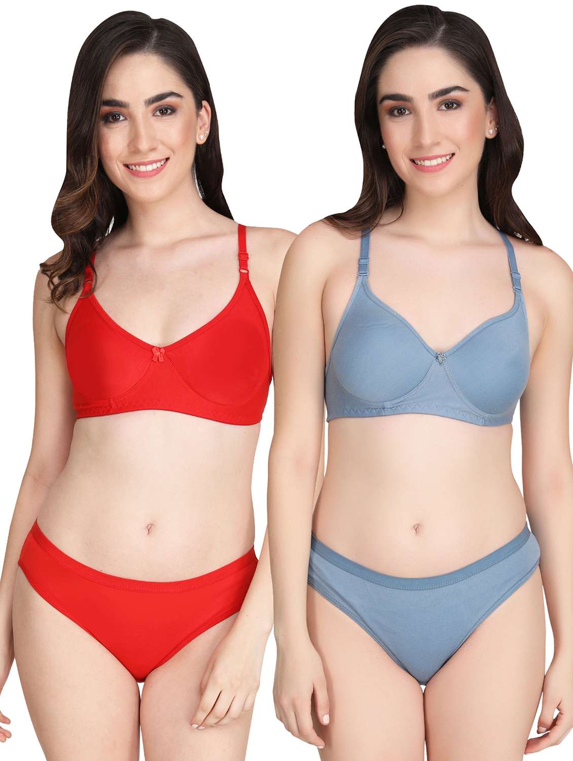 Liigne Women Everyday Padded Bra Panty Set (Pack Of 2) - This Lingerie Set Made of Pure Cotton