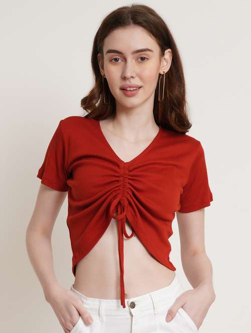 Hive91 Bring this Maroon Top for women to enhance your look. This top is made of Cotton Lycra fabric and comes with Plain Pattern and This Tops length is Small Size for 17.5\ Color Maroon
