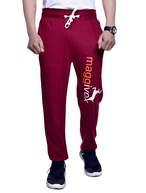 red cotton full length track pant