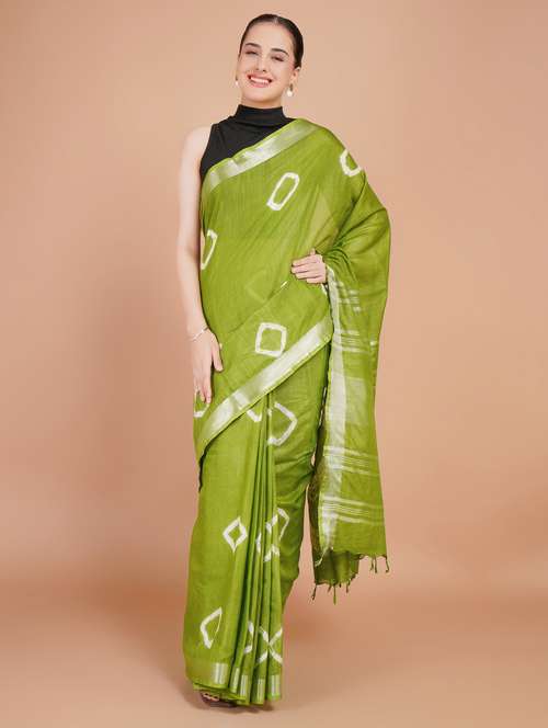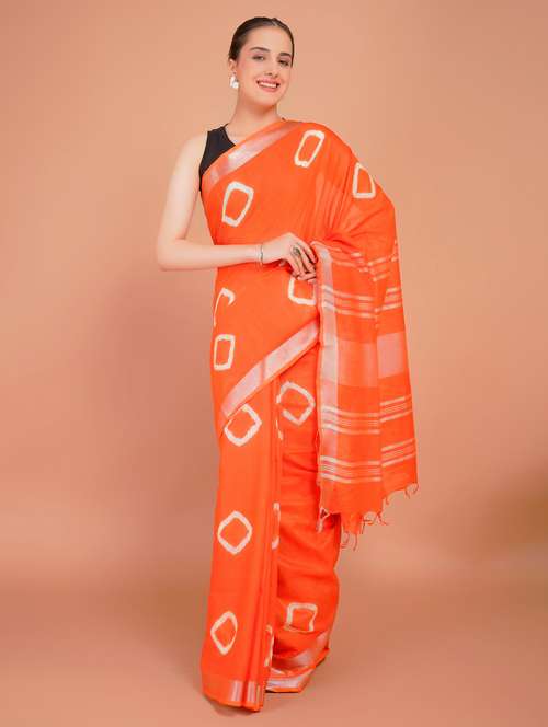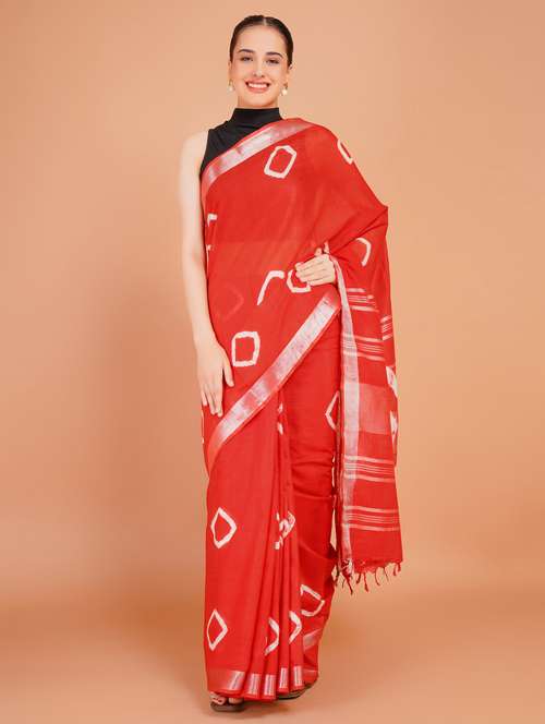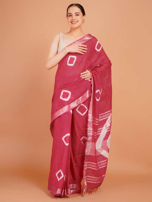 An amazing range of womens ethnic wear in soft and solid colors that looks perfect for regular wear. With beautiful designs and patterns. These apparels are very stylish and comfortable too. Get rid of the traditional look this season wearing these Sarees by Maker's Craft. This Shibori Hand Tye Dyed Saree comes with 5.5 meters length and 1 meter unstitched blouse fabric. Saree fabric- Pure Cotton with Zari, blouse fabric- Pure Cotton with Zari.