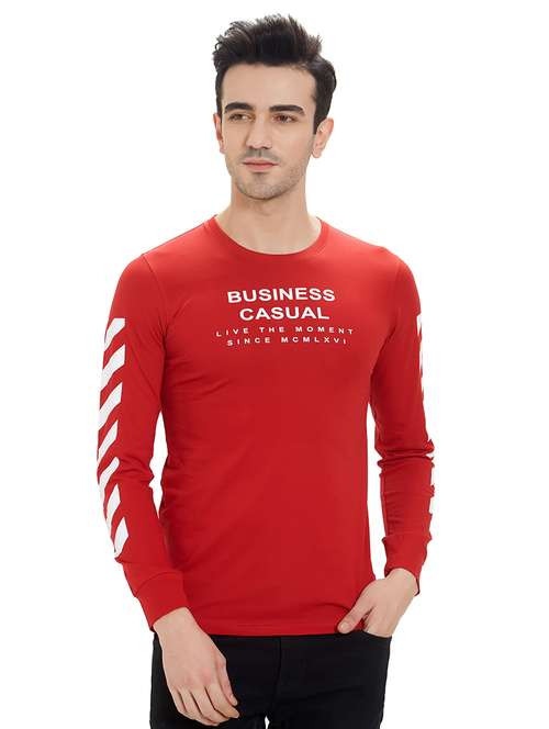 red typographic chest print t-shirt