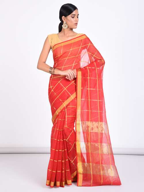 - » red chanderi saree with blouse