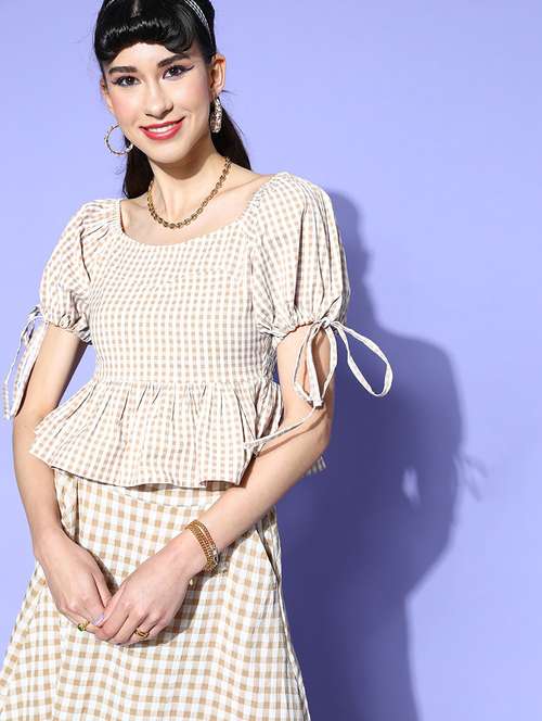 - » puff sleeved checkered top