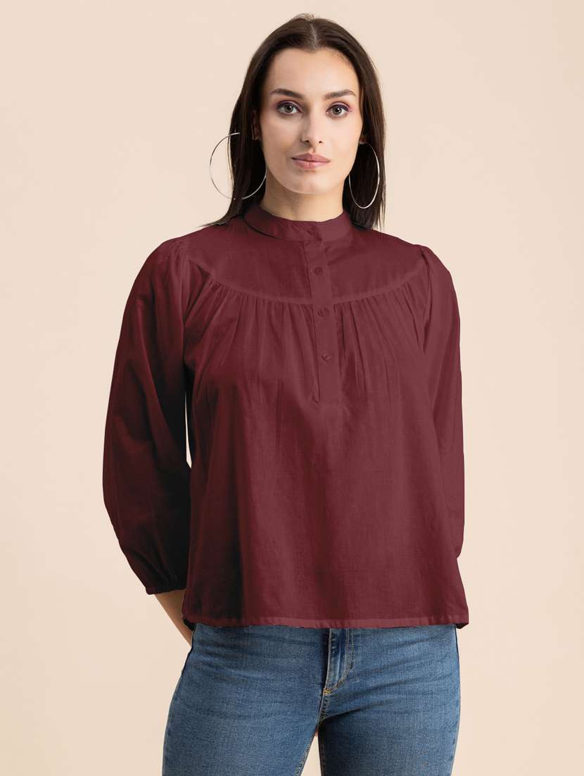 *Includes: This Clothing Consists Of 1 Top (Any Accessories Worn By The Model Are Not For Sale)*Material: Cotton Cambric Gsm: 74 *Top Length: 25 Inches (Approx.)*Model Stats: The Model In The Image Is 178 Cm Tall, And Bust 36\ Inches Is Wearing Size - (S) Small*Features: Quarter Sleeves, Waist Length, Mandarin Collar, Lightweight, Formal Look.*Care: Machine Wash At 30 C, Tumble Dry At Low Heat, Iron On Low Temperature*Size Information: Please Refer To Our Size Chart Before Making The Purchase. If Your Size Is In Between Two Sizes, We Recommend That You Choose A Larger Size.*Tags: Solid Tops For Women, Mandarin Collar Tops For Women, Quarter Sleeves Tops For Women, Casual Wear Tops For Women, Office Wear Tops For Women