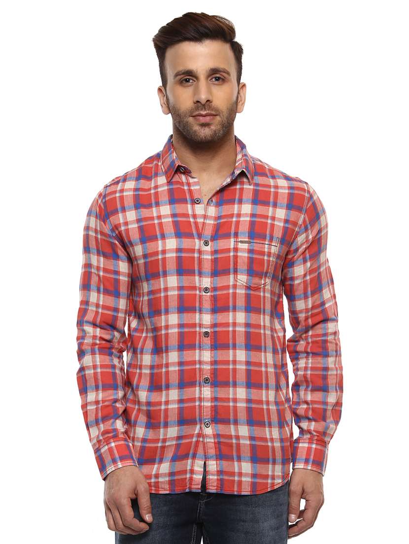 - Be a head turner by wearing this casual shirt from Mufti and grab it in red colour.