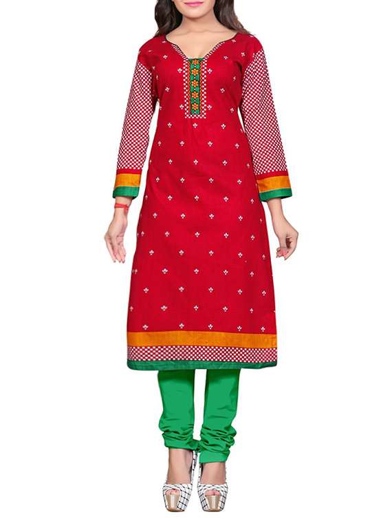 - » red cotton printed unstitched kurta