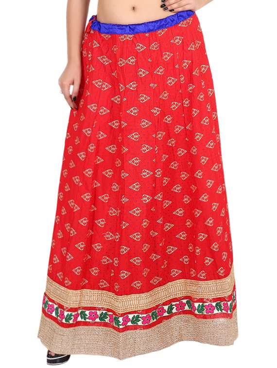 red printed cotton skirt