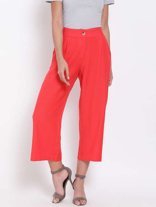 Take your formal dressing game a notch higher with this red pair of pants. The amazing fit will definetly flatter your curves and this is sure to become your favourite in no time.