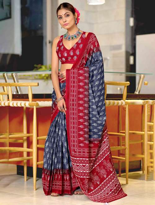 women printed casual wear saree with blouse