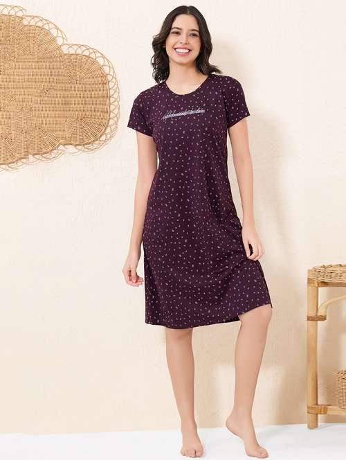 Quira Women's Hosiery Printed Nighty - Half Sleeves, Round Neck, Knee Length.