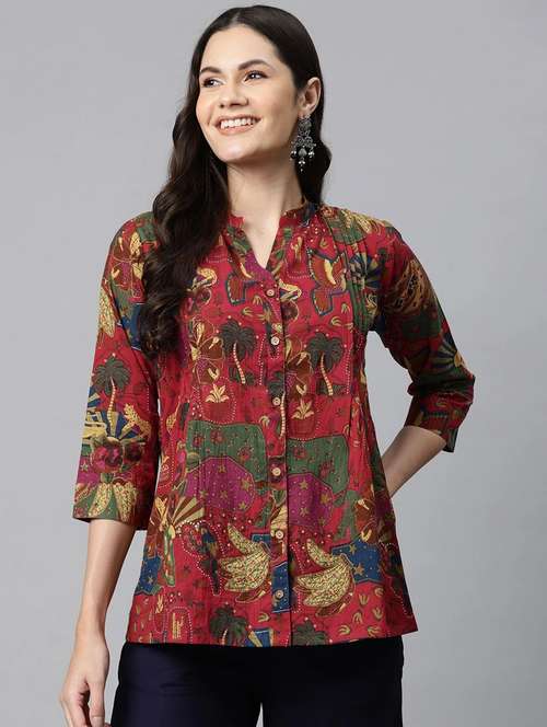 - » women mandarin neck printed a-line tunic