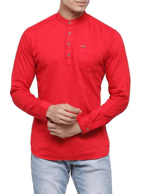 red cotton short kurta - 14919180 - Very Small Image - 1