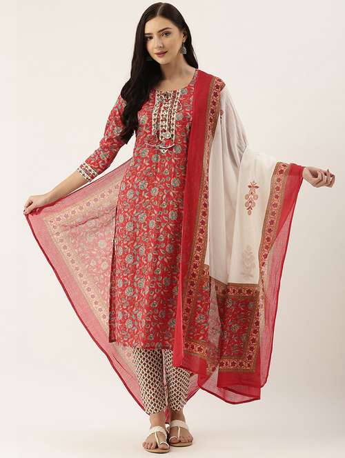 red cotton suit set