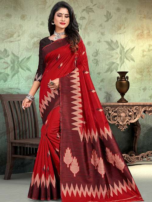 women's printed red colored saree with blouse - 16777238 - Very Small Image - 1