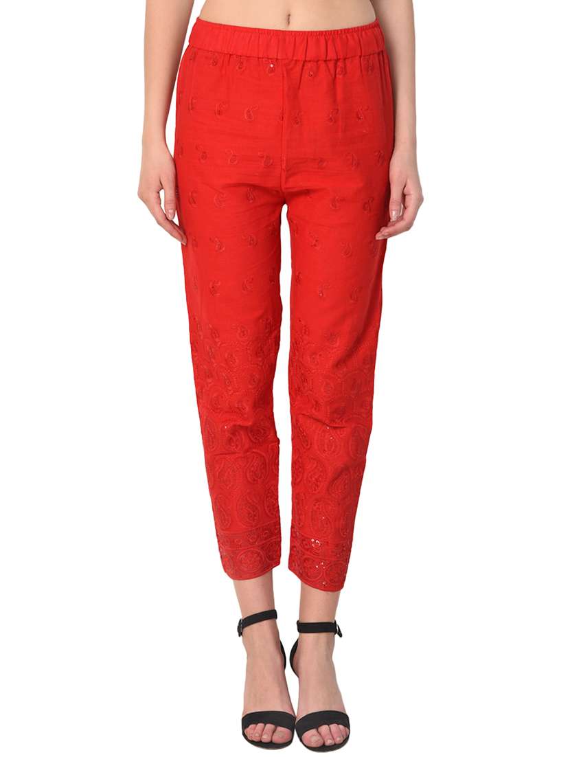 Created in a slim fit silhouette, these palazzo by Brand SANGANI are a real visual delight. Showcasing a embroidered design with transaparent sequin randomly placed, these palazzo look visually appealing. Tailored to perfection from cotton for a comfort, these palazzo will go well with a voguish top and peep toes.