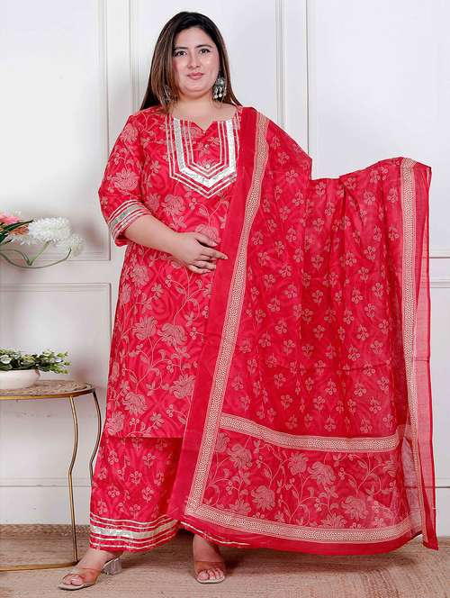 women plus size floral three quarter sleeve kurta palazzo with dupatta set