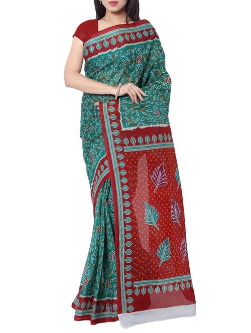 - » women's printed sea green colored saree with blouse
