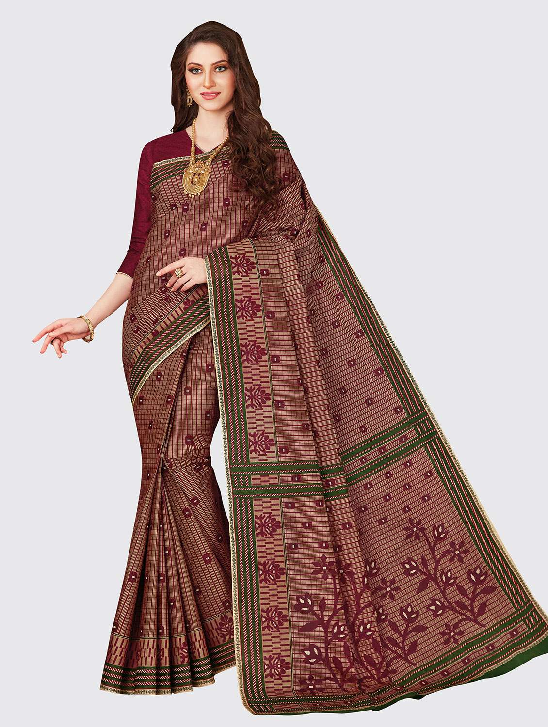 red cotton printed saree with blouse - 18959029 - Very Small Image - 1