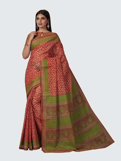 - » red cotton printed saree with blouse