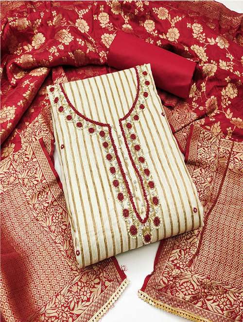 women stripes printed unstitched suits
