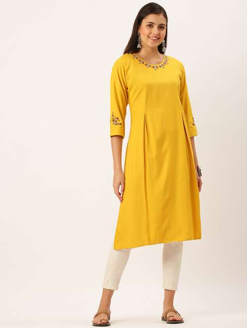 women round neck straight kurta with neck embroidery - 18390215 -  Standard Image - 1 women round neck straight kurta with neck embroidery - 18390215 -  Zoom Image - 1