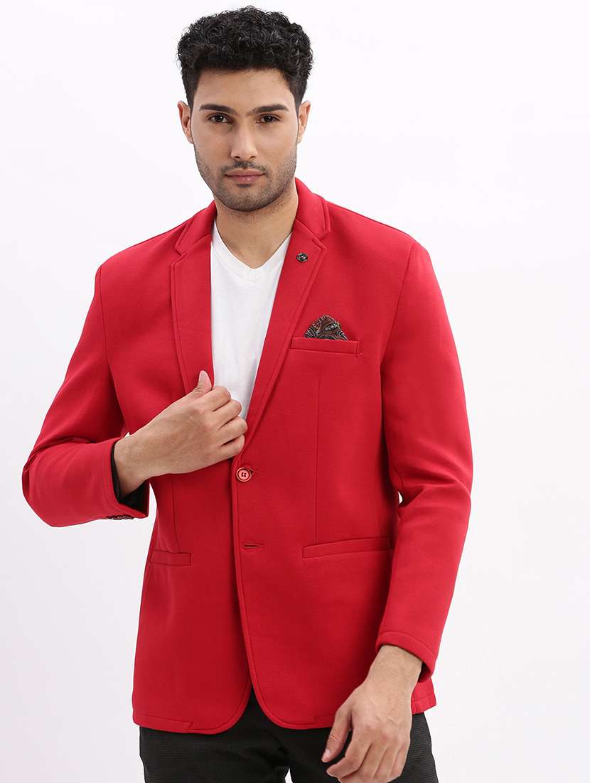 SHOWOFF Men's Solid Notched Lapel Red Single Breasted Blazer