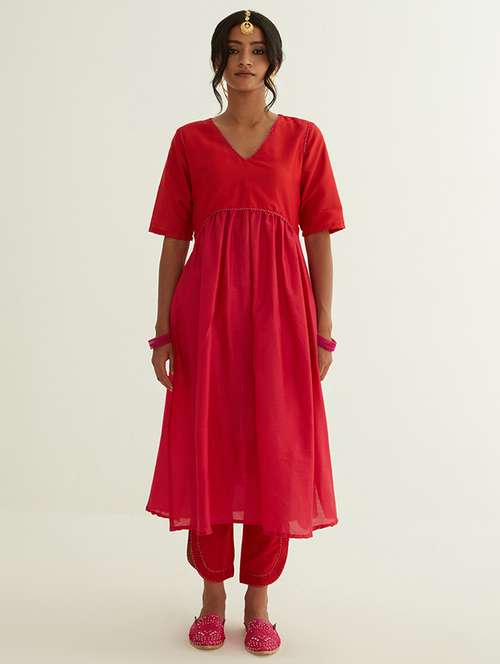 - » women red solid kurta pant set