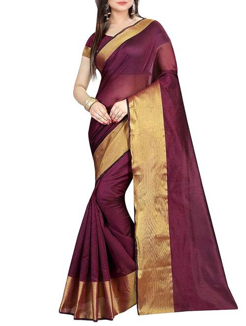 - » purple cotton silk bordered saree with blouse