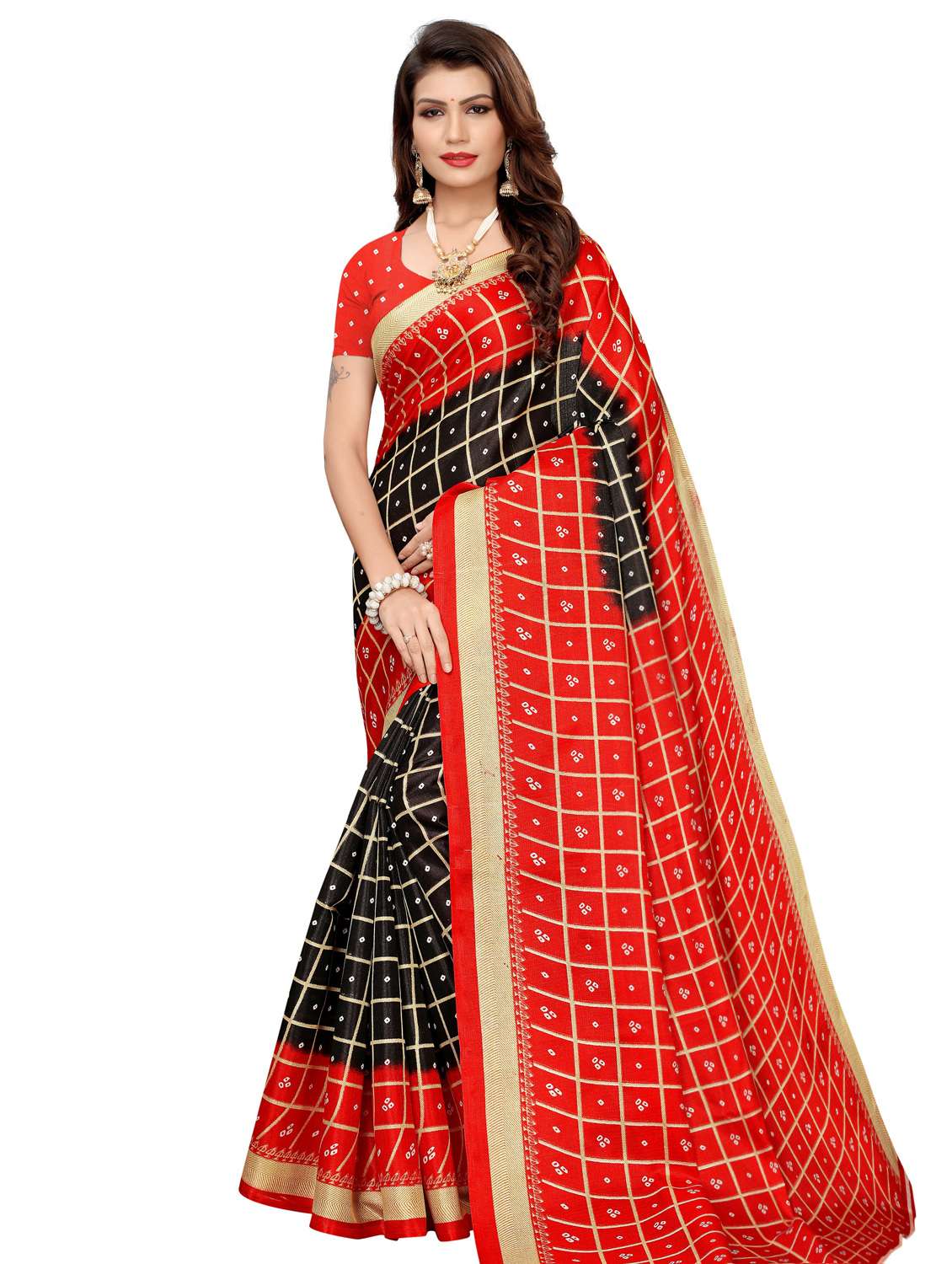 checkered printed saree with blouse