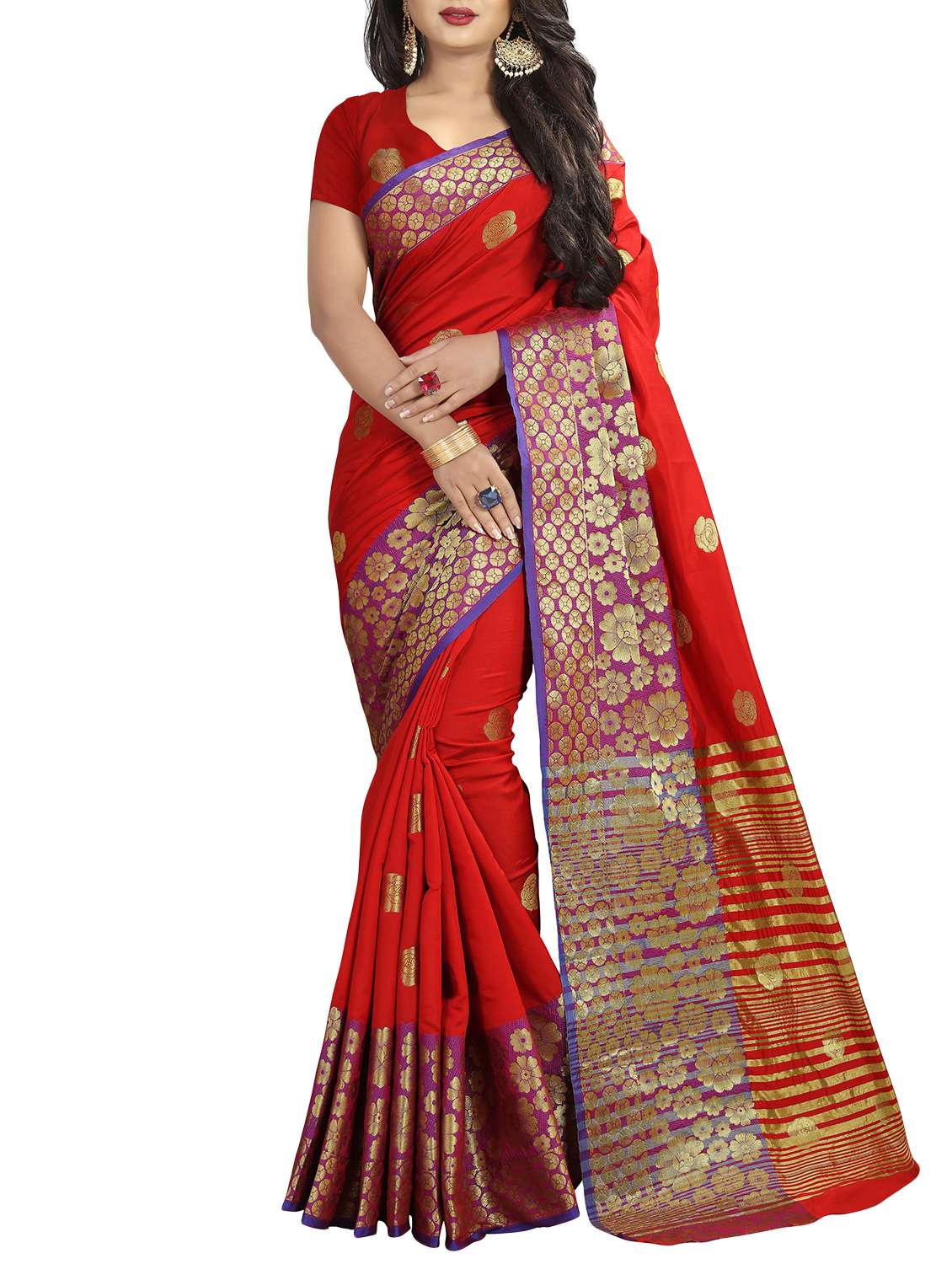 - » floral zari motif red banarasi saree with blouse