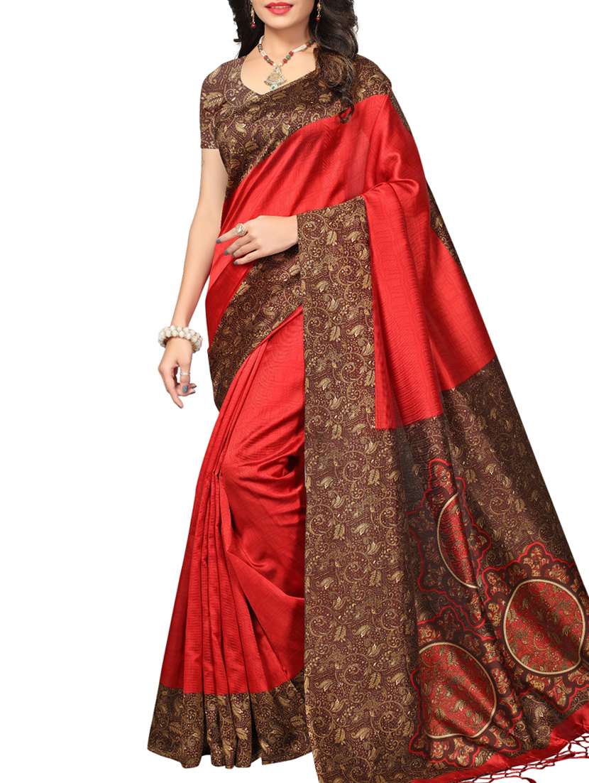 - » red cotton silk printed saree with blouse