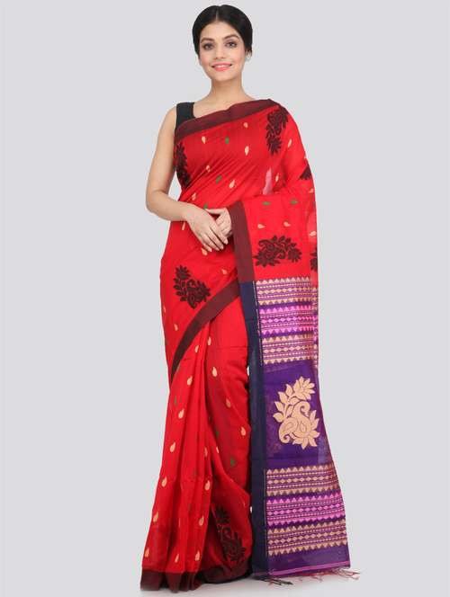 - » red cotton silk handloom saree with blouse