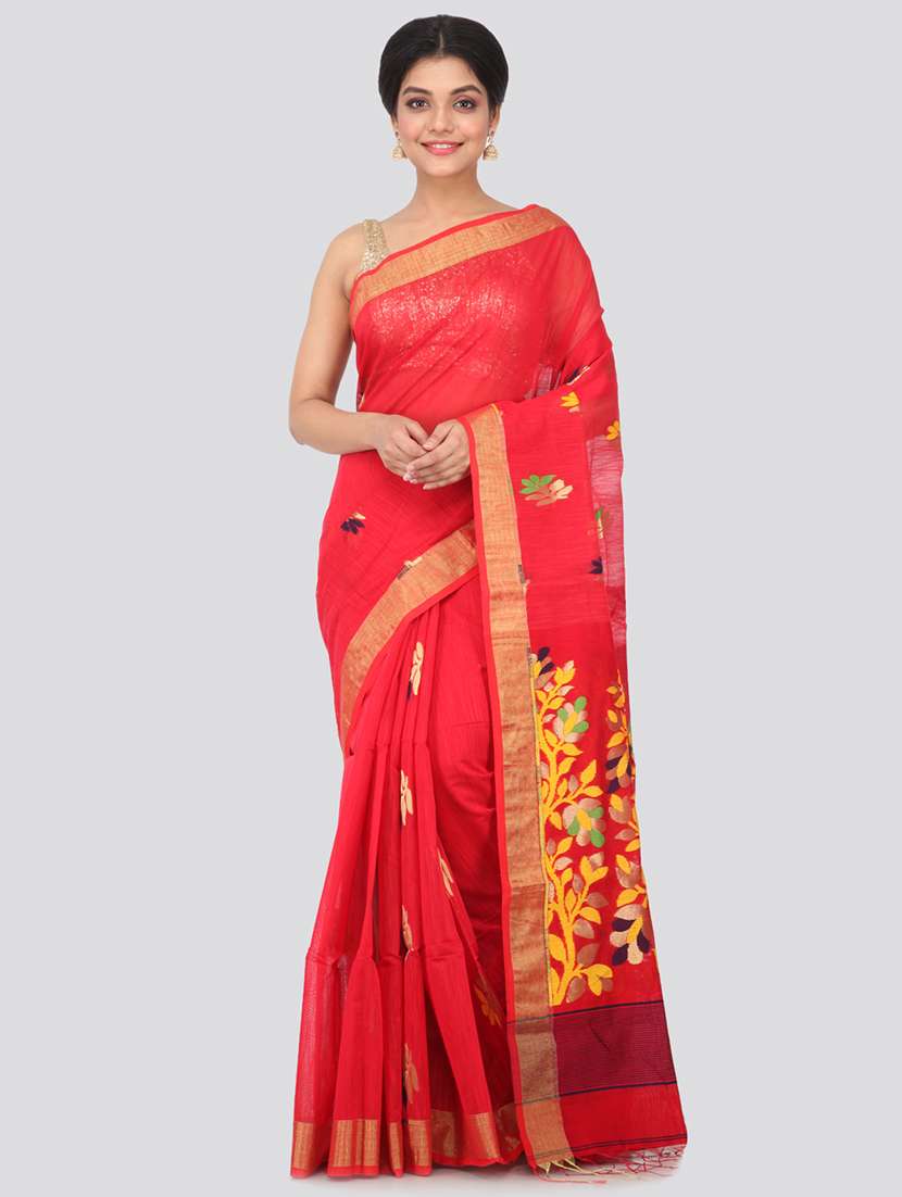 - » red cotton silk handloom saree with blouse