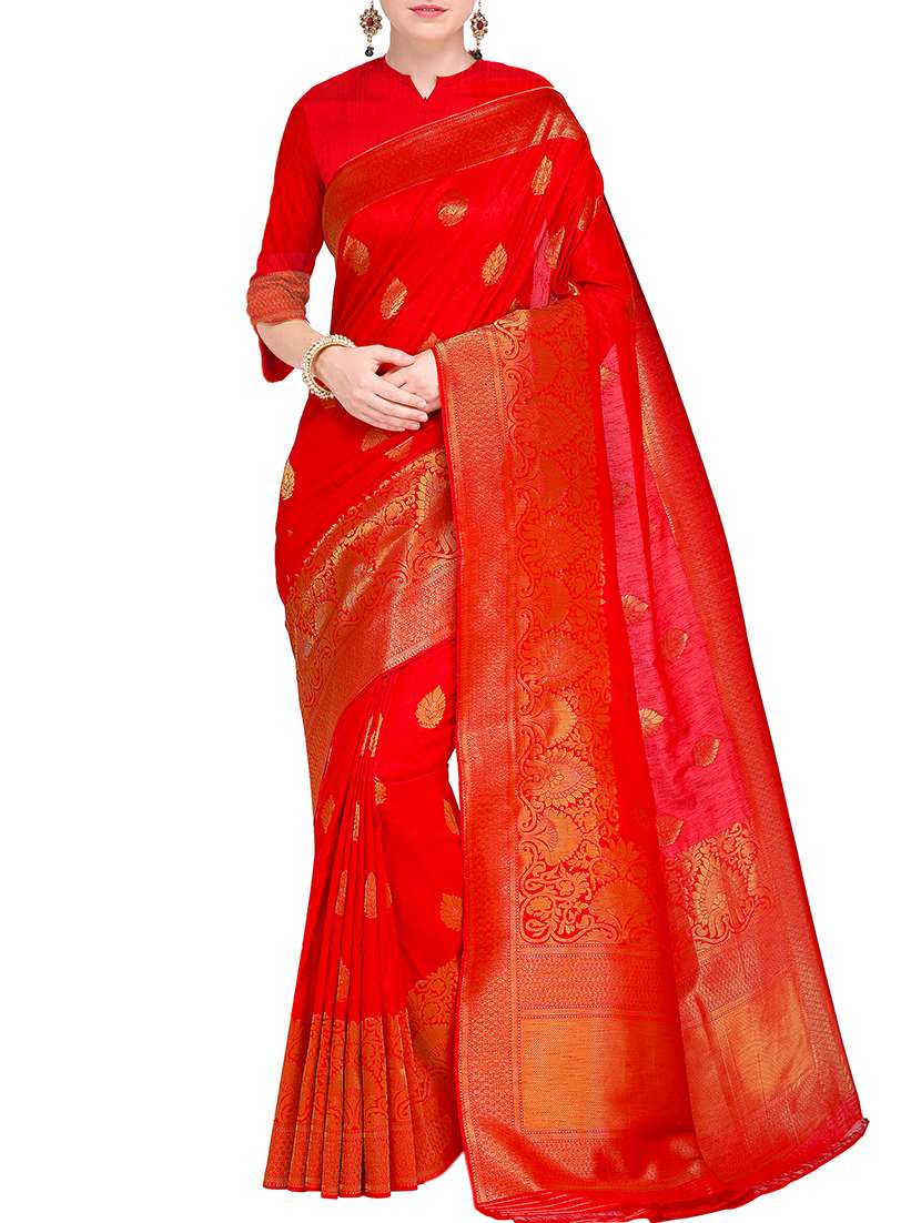 zari motif red banarasi saree with blouse - 15458383 - Very Small Image - 1