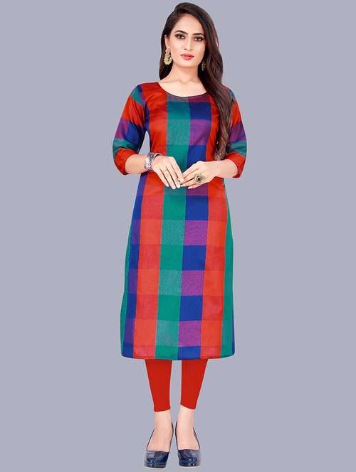 - Grab this beautiful kurta made up of cotton silk fabric featuring round neck designs.