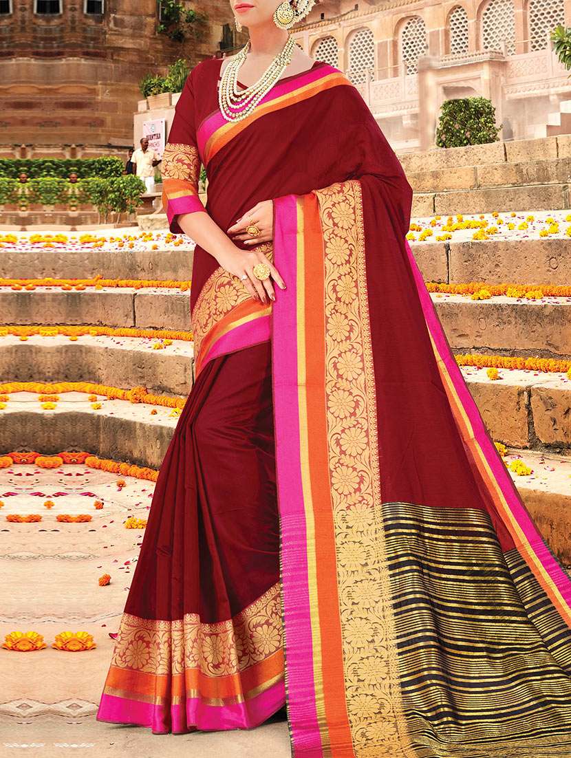 - » red cotton silk bordered saree with blouse