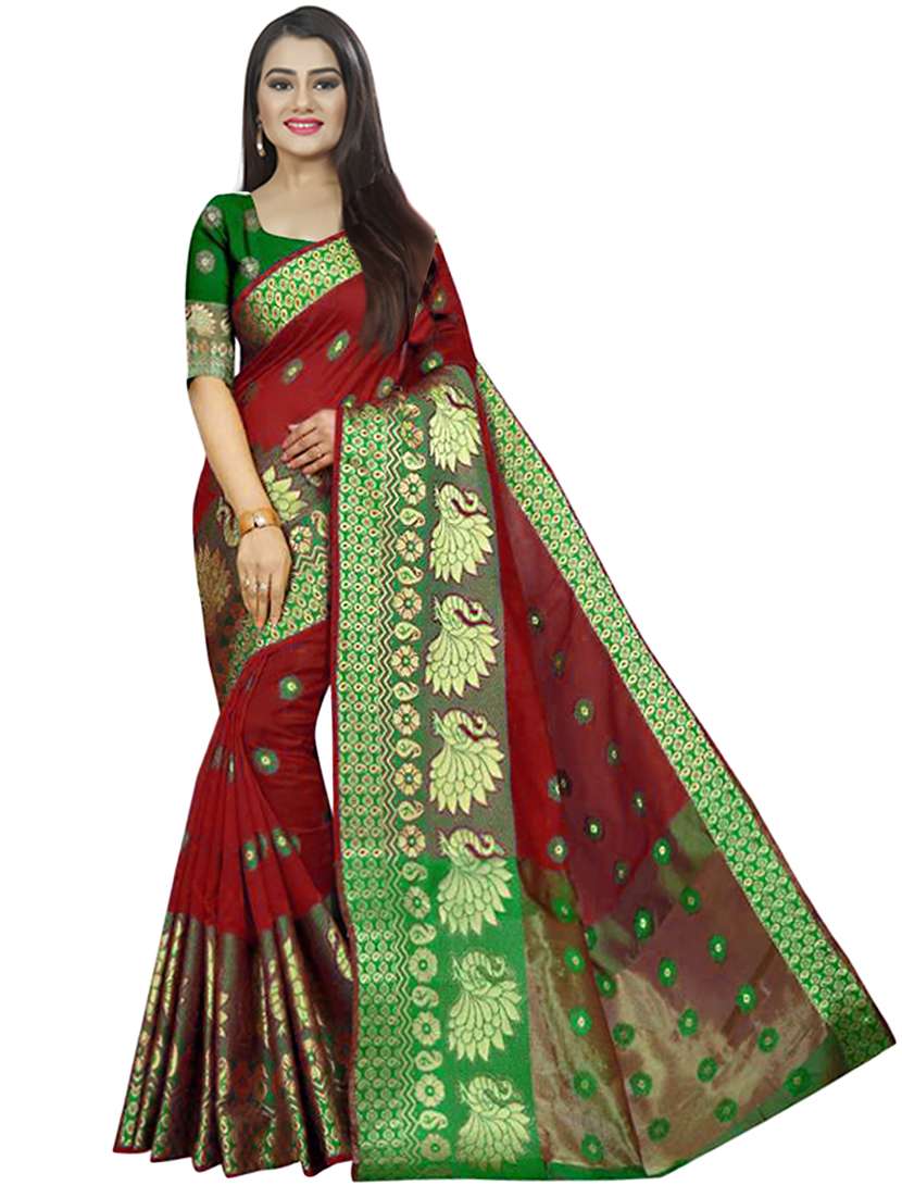 contrast bordered woven saree with blouse - 19453812 - Very Small Image - 1
