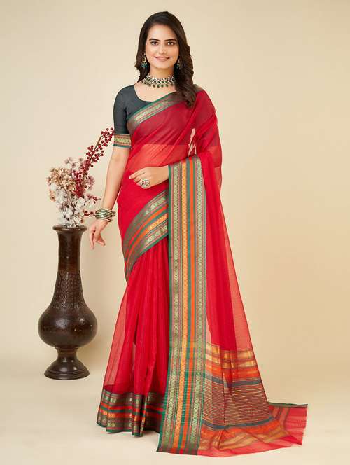 - » women red kota doria saree with blouse