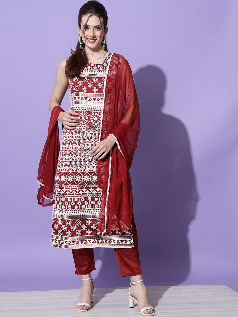 - Find gorgeous sets of ethnic wears in trending designs in maroon colors suitable for casual wear of occasions.