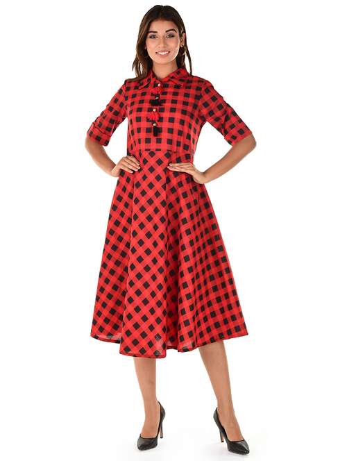 - » red checked fit & flare ethnic dress