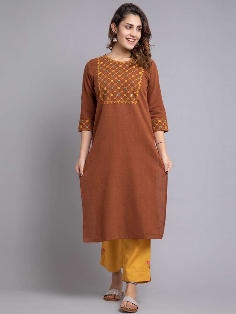 - » round neck solid straight kurta