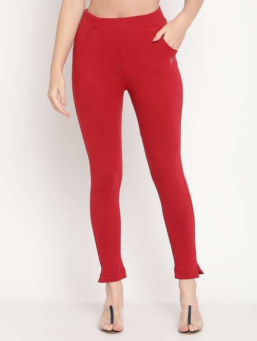 - Brace yourself to adorn the most fashionable leggings of all times available only at LimeRoad from TAG 7 and look glamorous in red colours.