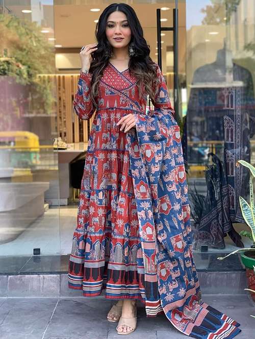 - » women printed long sleeve kurta pant with dupatta set