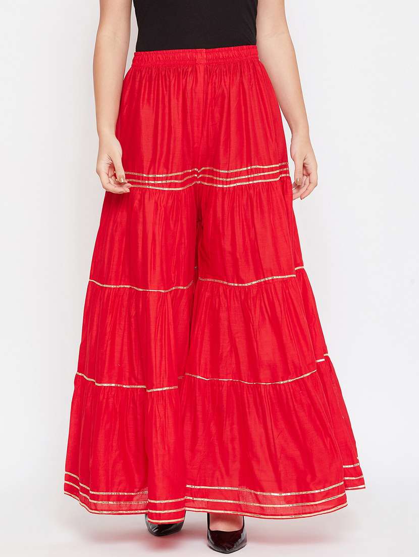 - Find a versatile collection of shararas in red colours and cotton fabric that not only gives an outstanding rich look but also ensures breathability and comfort.