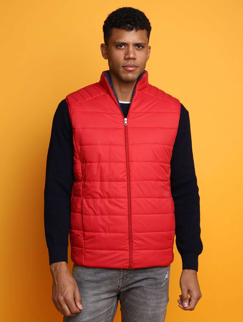 - » men red quilted detailed sleeveless reversible jacket