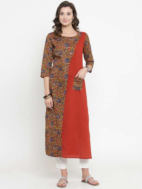 - » rust kalamkari printed kurta with pant
