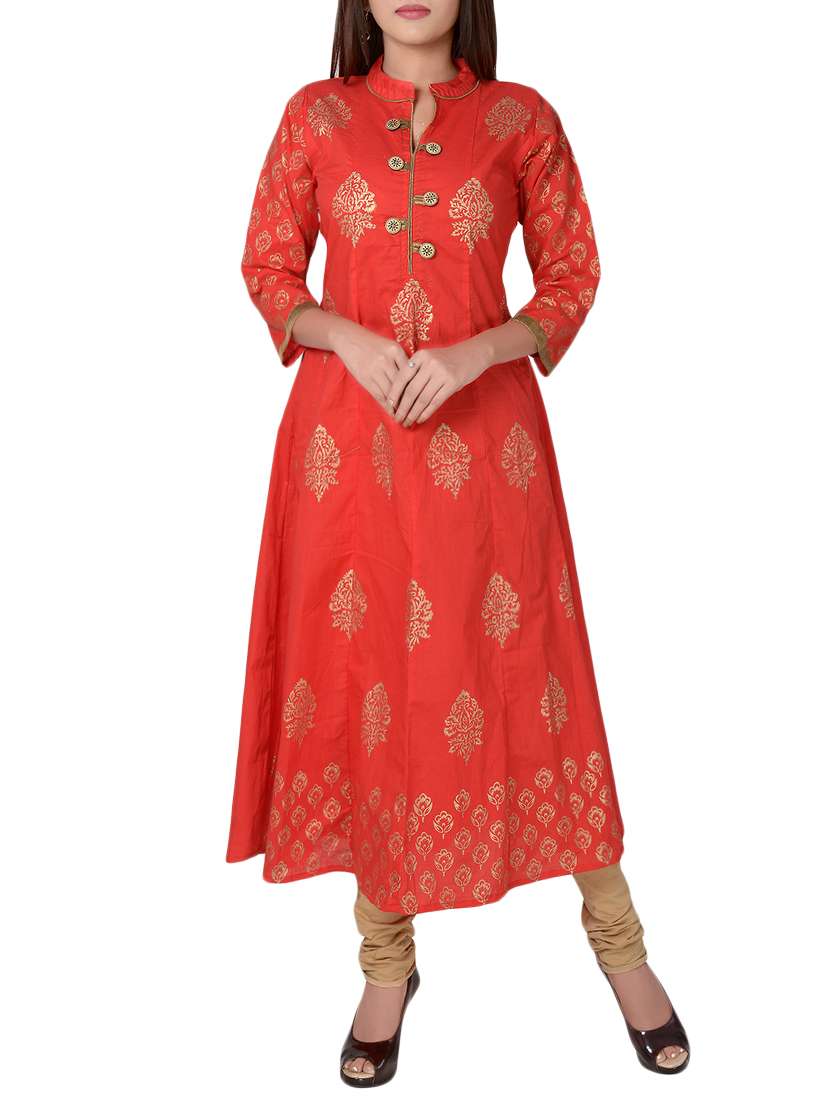 red cotton anarkali kurta - 15139369 - Very Small Image - 1