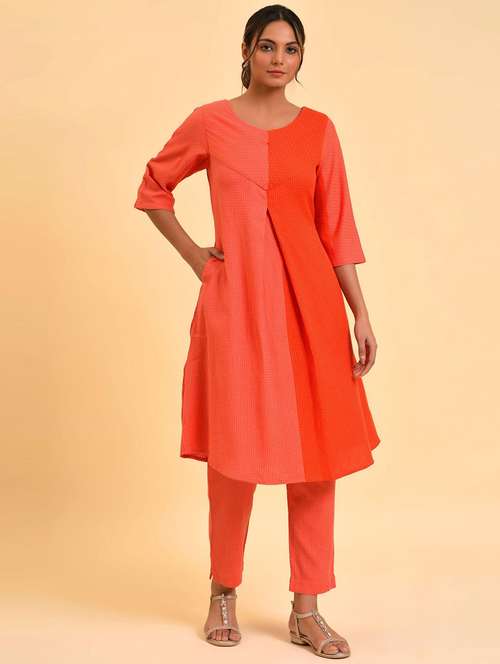 - » round neck color block kurta pant set