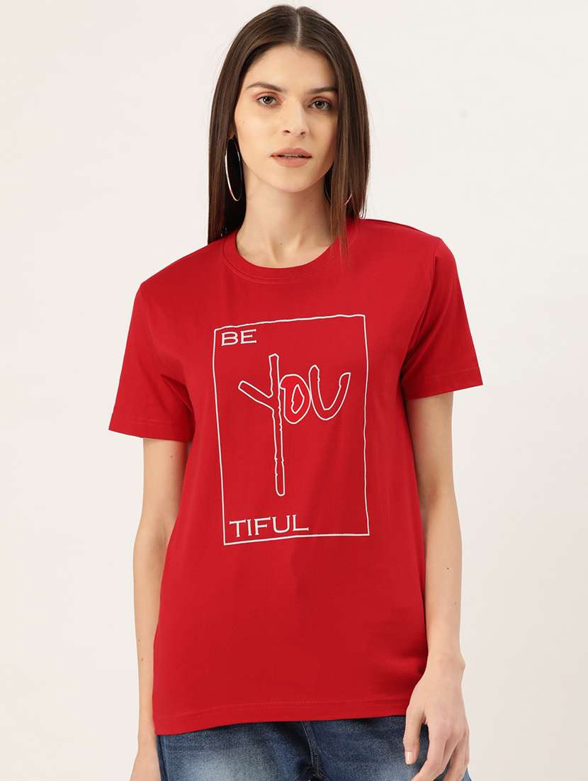 women's chest print round neck t-shirt